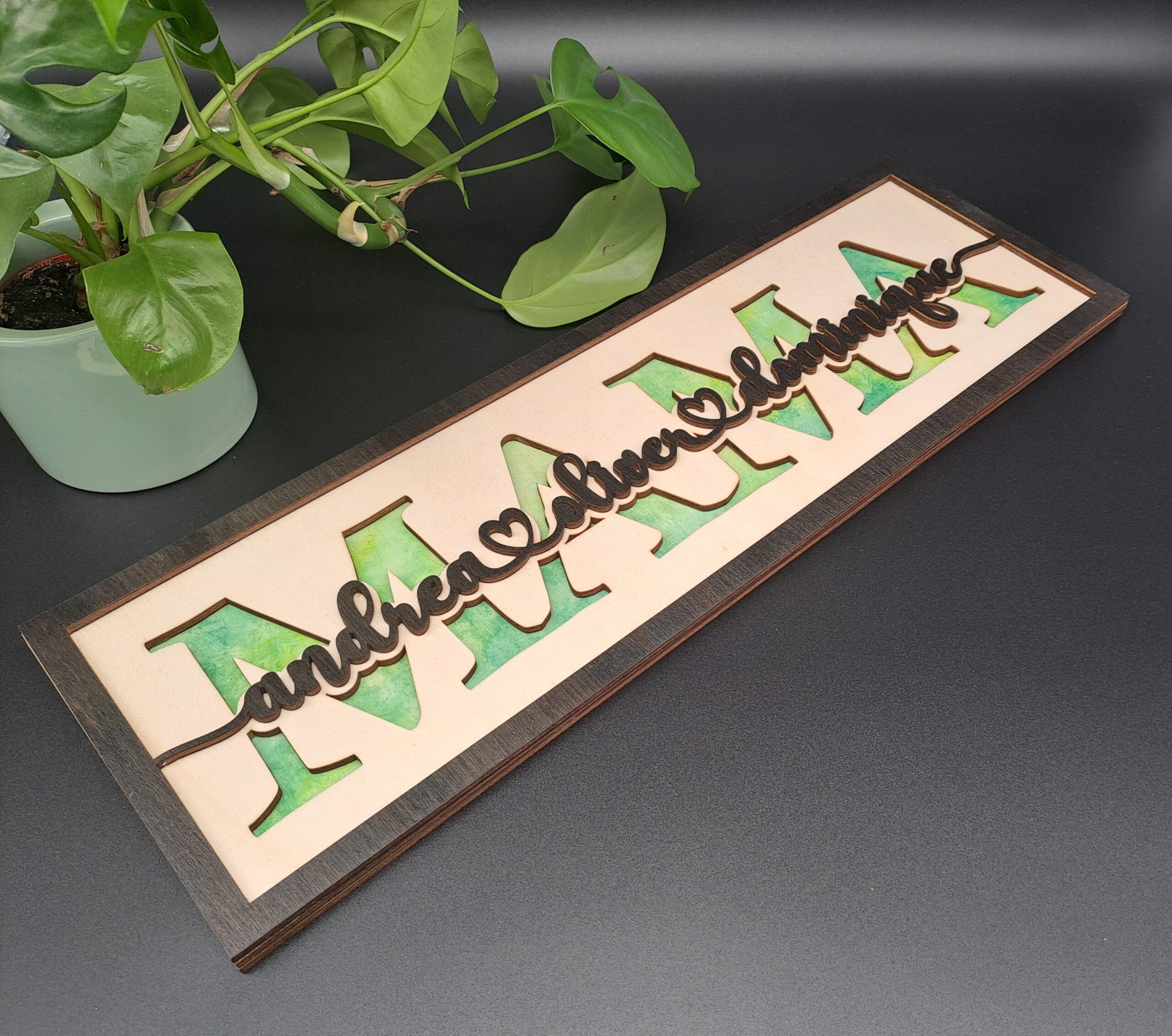 Mama Schild mit Kindernamen – Personalisierbares Wandschild 3D