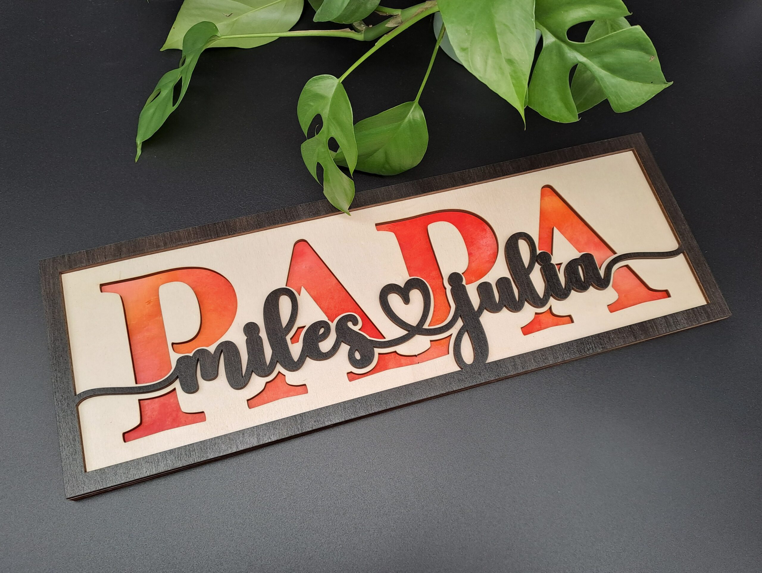 Papa Schild mit Kindernamen – Personalisierbares Wandschild 3D