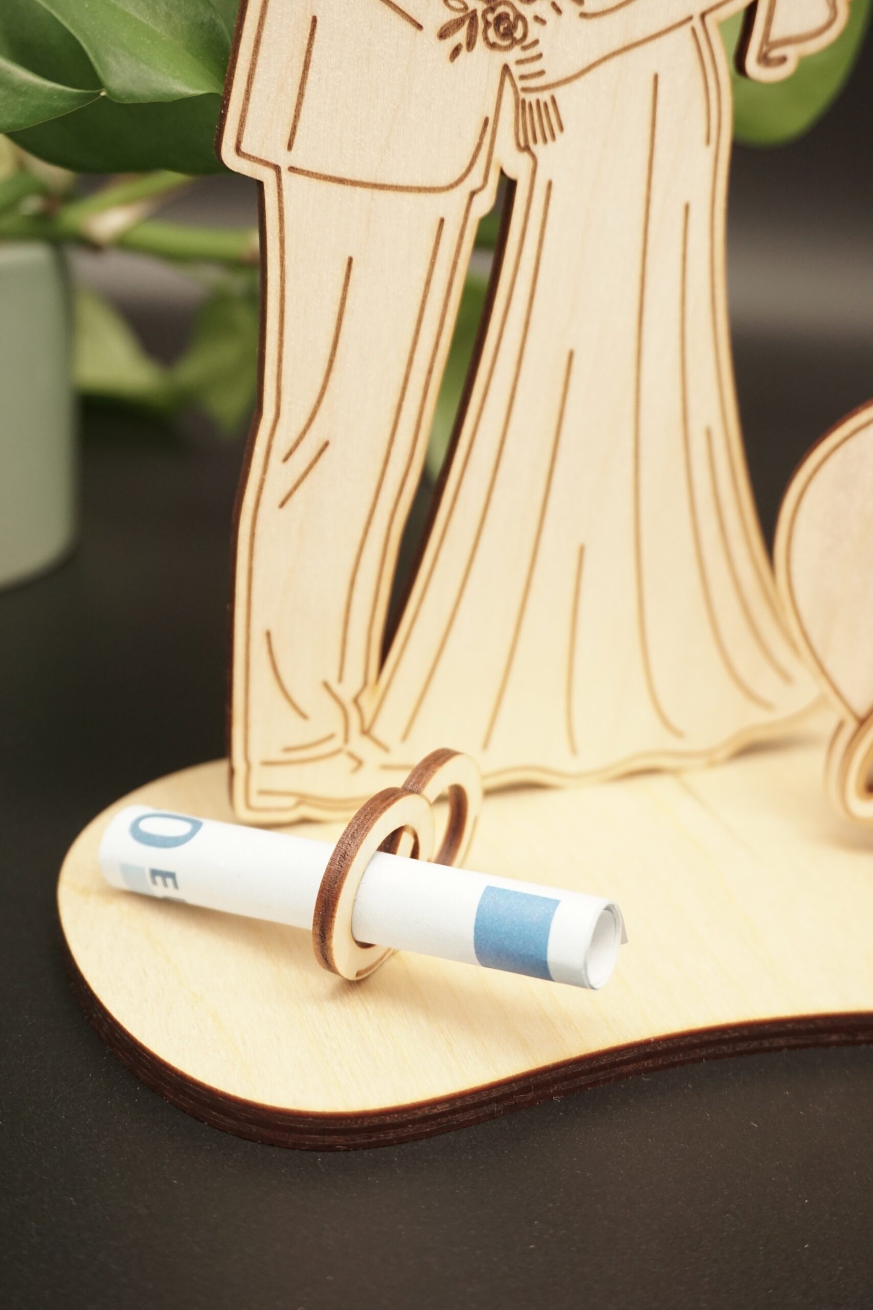 Geldgeschenk zur Hochzeit, mit Brautpaar, aus Holz
